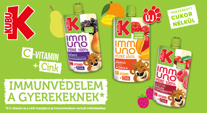 A Kubu új, innovatív termékkel bővíti Immuno püré kínálatát. Az új Kubu Immuno mangó–acerola püré nemcsak finom, hanem tudatosan összeállított összetevőivel az immunrendszer támogatását is segíti, hiszen hozzáadott C-vitamint és cinket tartalmaz*. A termék hozzáadott cukor és tartósítószer nélkül készül.